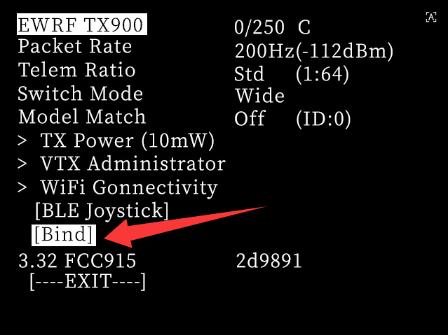 Bind: Set the RF TX module into binding status