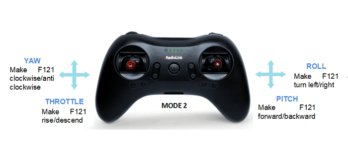 RadioLink 8-channel transmitter are well set by factory default with the flight modes. To control F121, binding is the only thing needs to be done.