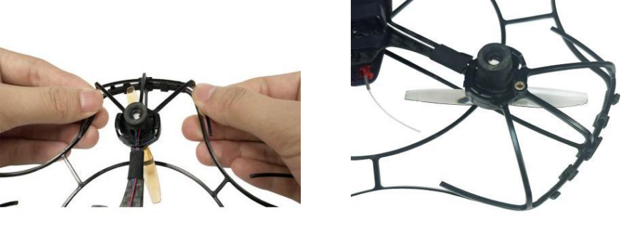 Put on the propeller guard from the bottom and adjust the position of the notches correspondingly.