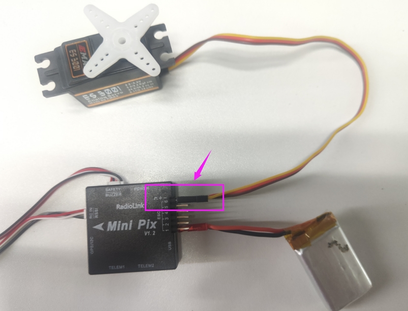 1. Connect the servo to Mini Pix ESC 6.