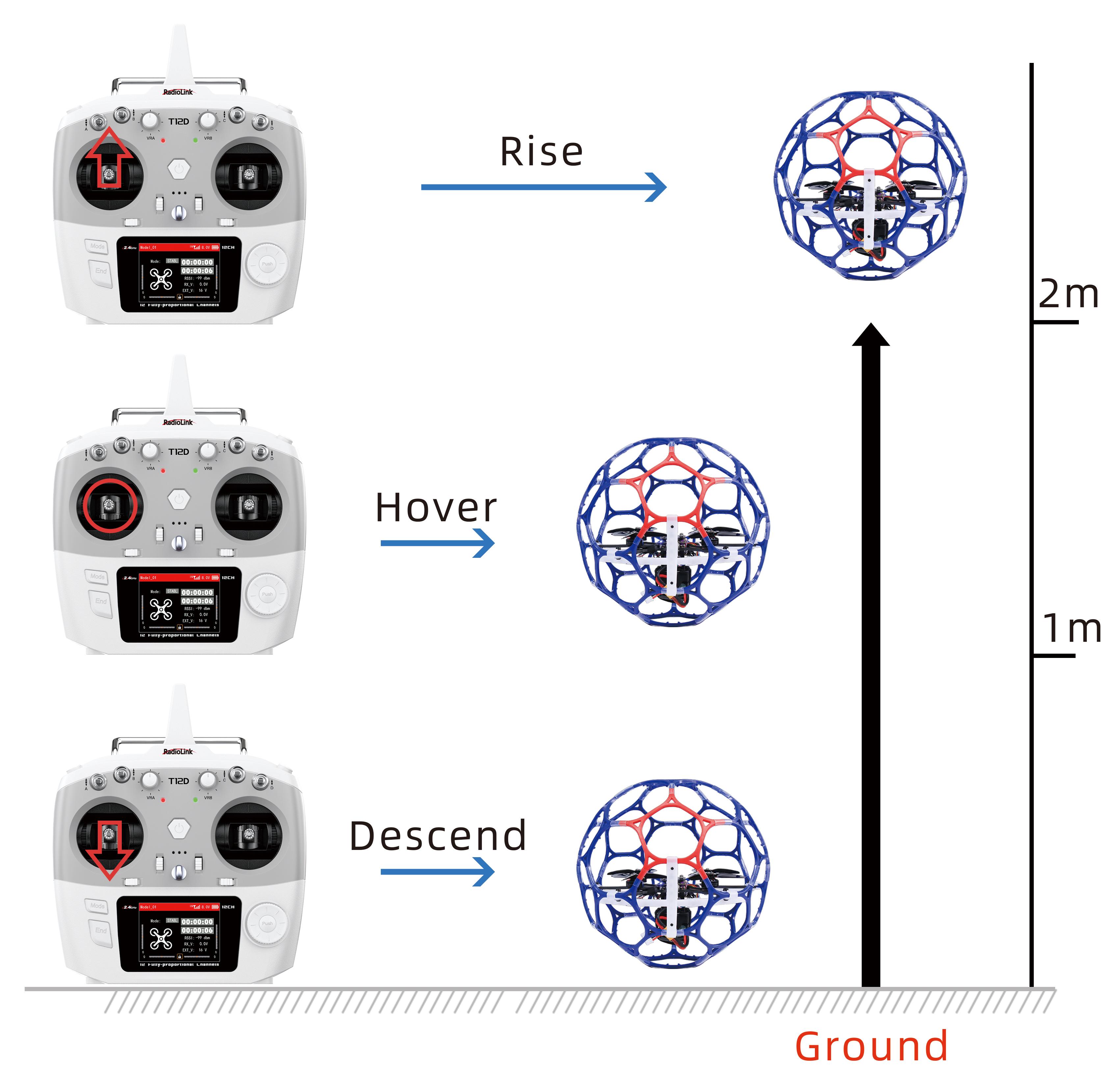 A. Throttle: Rise/ Descend/Hover(Note: Take T12D mode 2 as an example)