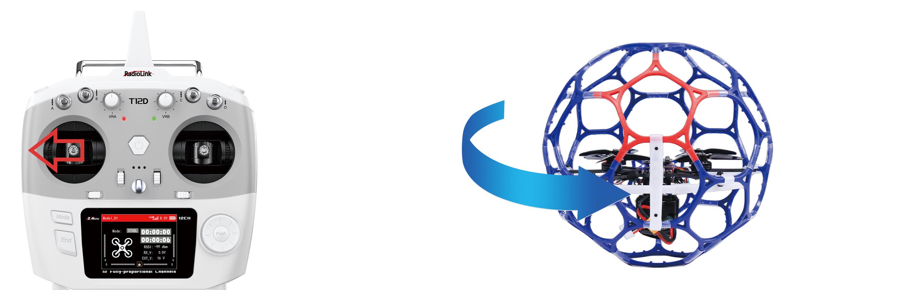 Toggle the roll stick (on the right) to the left and LD-B20 will fly to the left side and toggle the roll stick to the right, then LD-B20 will fly to the right side.