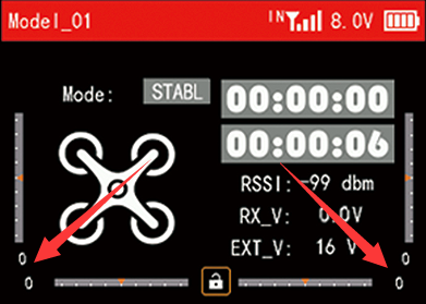 The basic operation such as Rise/Descend/Forward/Backward/left/right of Stabilize mode is the same as Alt-Hold mode. In Stabilize mode, the throttle corresponds to the drone power. The more the throttle stick is pushed up, the greater the climbing power. The flight control no longer assists in altitude setting. If you want the drone to maintain the same altitude, the pilot needs to practice for a period of time to achieve it through flight operations.