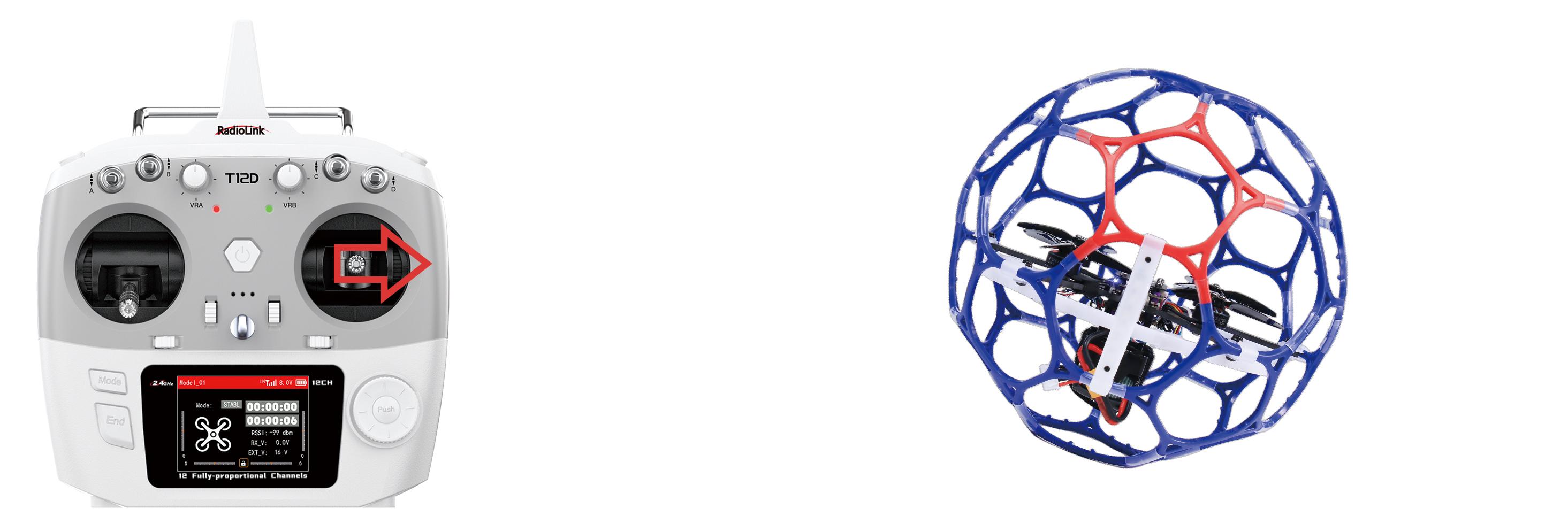 SWD: Push it up to turn off turtle mode. Push it down to turn on turtle mode. Corresponding to CH8 of the flight controller.