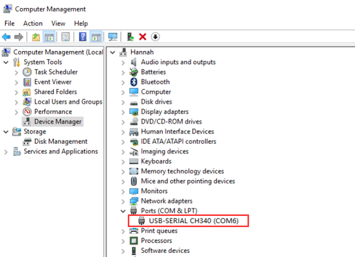 3) In the device manager, click on “COM AND LPT”, then you can find the correct COM port.