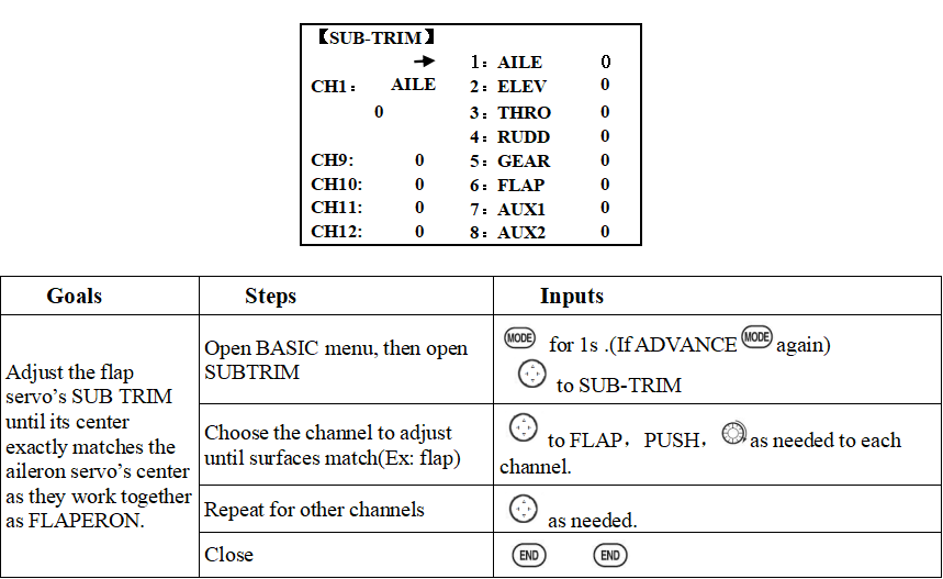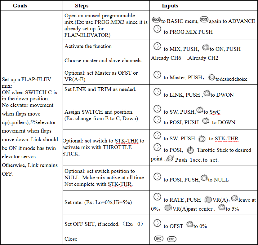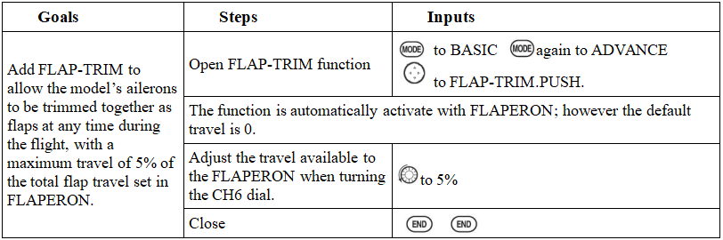 KNOB A | CH6 (flap trim if FLAPERON is off) | CH6 CAMBER-FLP FLAP-TRIM | HOV- PIT | CH6 |