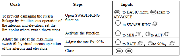 This function is to limit movement of swash plate to avoid damage to the SWASH ROB during operation aileron and ELEVATOR. It is affected in 3D flight. Movement of AILERON and ELEV is limited in the circle.