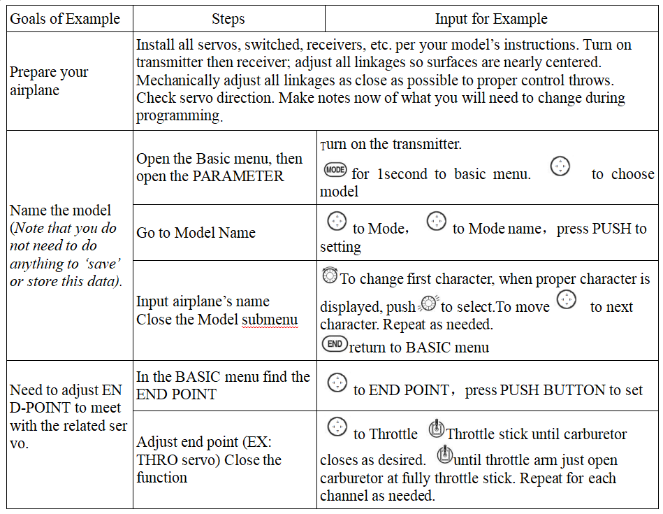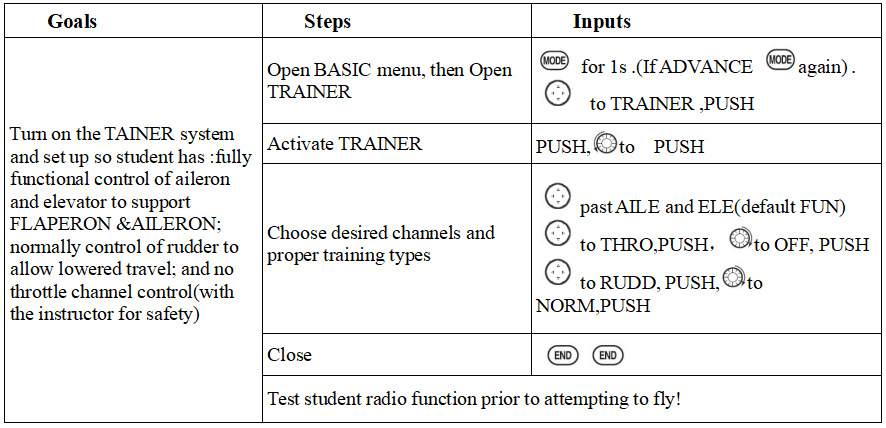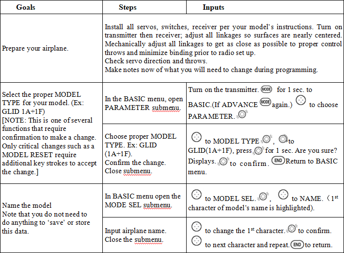 The basic function menu is same like ACRO, GLID and HELI, please find the detail in the former chapters. Below is the special option: