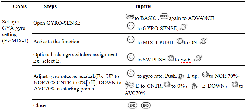 SWITCH G or E* | GYRO-SENSE | —— | CONDITION THR-HOLD | —— |