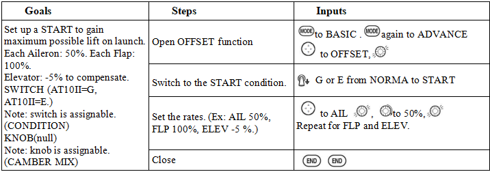 •When OFFSET is inactive (its switch is off), the OFFSET and any trim adjustments to it have no effect (model obeys the trim settings of the currently-active flight condition.)