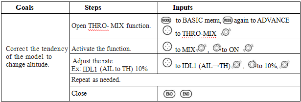 This function can be set for each flight condition, and is used to correct the tendency of the model to change altitude when the rotor is tilted by aileron, elevator, and rudder controls.