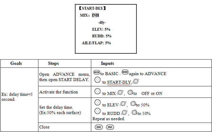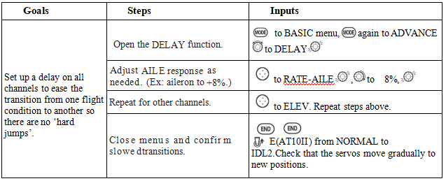 • Separate delay times are available for aileron, elevator, rudder, throttle, and pitch.