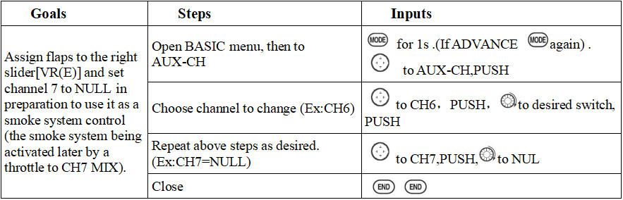 KNOB C | CH7 (disabled if AIL-DIFF on) | CH7 | HI/LO-PIT | CH7 |