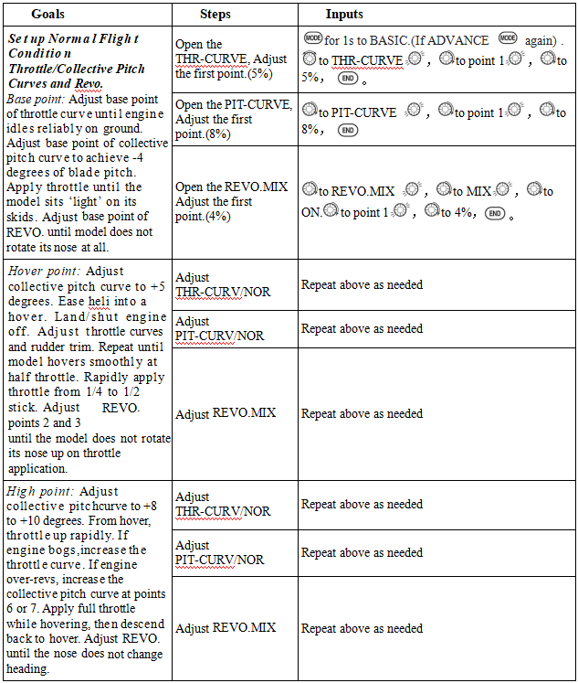 • Curves are adjusted to maintain constant RPM even when the collective pitch is negative (inverted). Note that REVO mixing has one curve for idle-ups 1 and 2 and a second curve just for idle-up3.