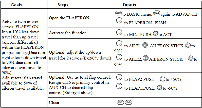1 | Combined elev-2&aileron1 elev-1&aileron-2 | Combined flap-2 &aileron-1 | aileron-1 | Aileron-1 |