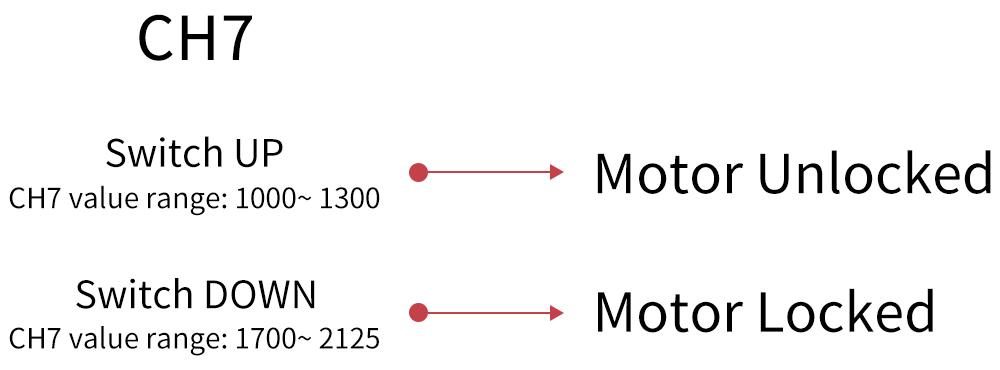 The motor can be locked/unlocked by Channel 7 (CH7) in the transmitter.