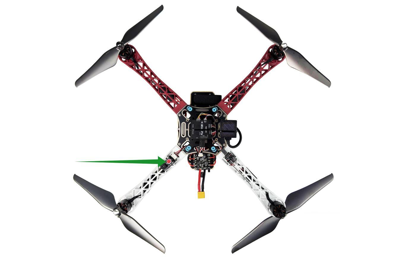 When the safety button on F450 is always on, pilots have better keep distant from the aircraft to ensure the safety and check the current flight mode. The transmitter can only be armed under the Stabilize Mode and Alt-hold Mode.