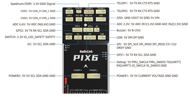 RadioLink flight controller PIXHAWK, Mini Pix and TURBO PiX are compatible with the firmware from APM only.