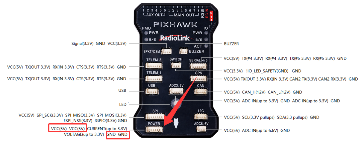A: The ESC pins of PIXHAWK only supply power for external devices (such as servos), not for the flight controller.