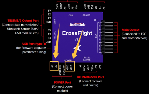 A: Yes. The signal wire of the ESC is connected to the pins of the flight controller. The 5V wire and the ground wire of the ESC is connected to any 5V and GND of the flight controller. Take CrossFlight as an example.
