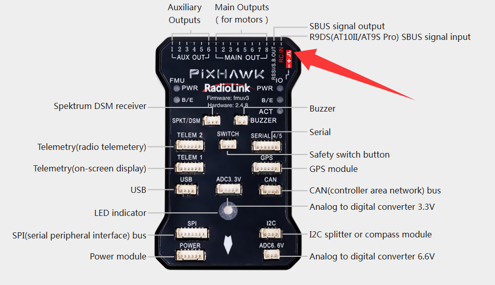 RadioLink flight controller PIXHAWK, Mini Pix and TURBO PiX are compatible with the firmware from APM only.