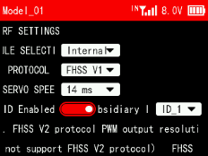 1、Turn on Subsidary ID function. Then set the ID number according to your models and then finish the binding and parameters set for each receiver.