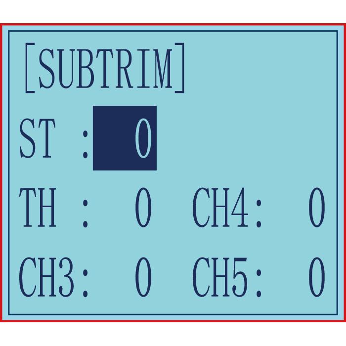 Use this function to adjust the neutral position of the steering, throttle and all other channel.