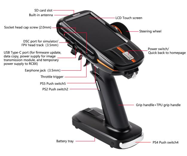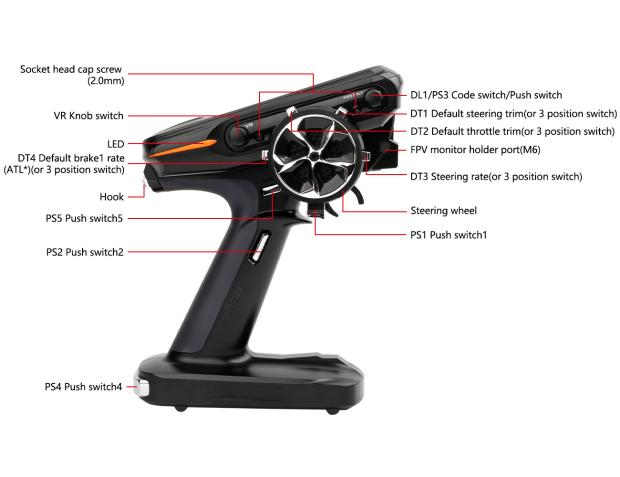 PS5 | Push Switch 5 | Default control CH5, can be programmed | Two PS5 switches on the left and right side, convenient for left and right-handed users |
