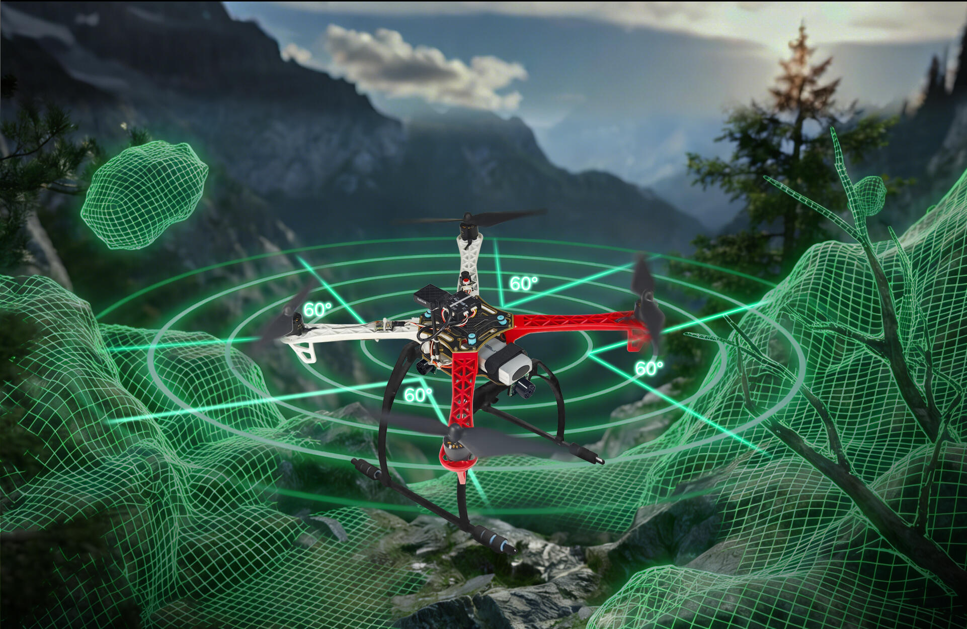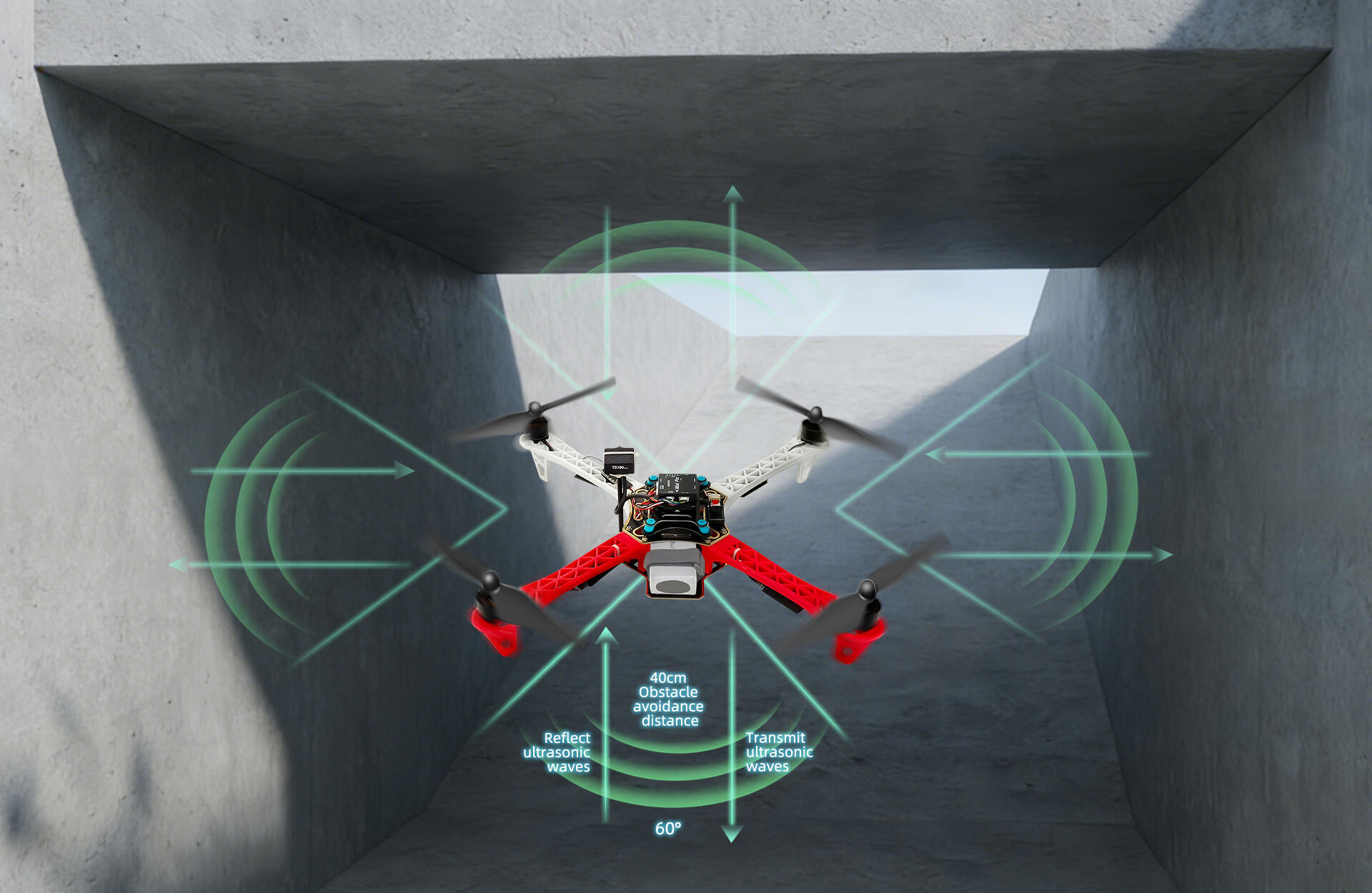 60° beam angle ensures environment detection and obstacle sensing in real-time. Connect SUI04 with all RadioLink APM flight controllers, via the I2C expansion board to realize obstacle avoidance in 6 directions* synchronously to guarantee a safer flight.