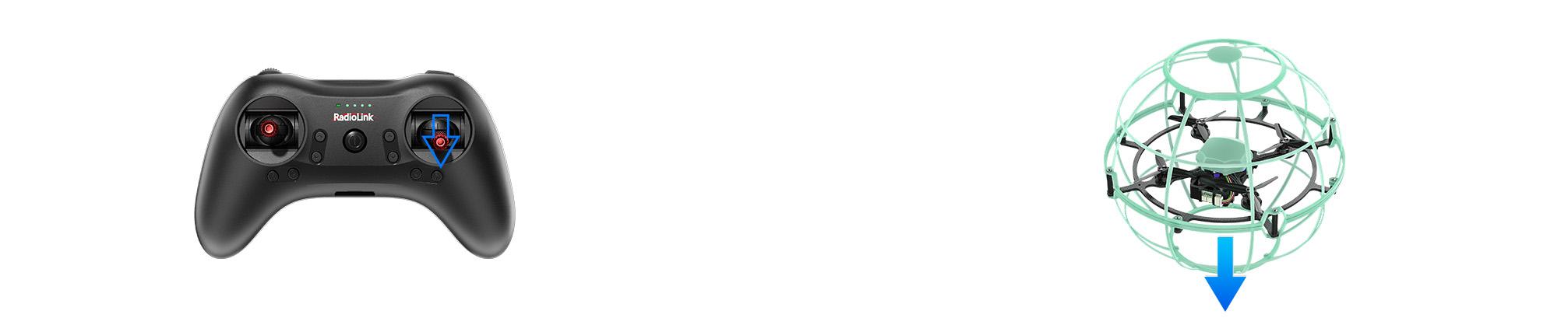 Toggle the throttle stick (on the left) vertically upward and BDS200 will rise and toggle the throttle vertically downward, then BDS200 descends.