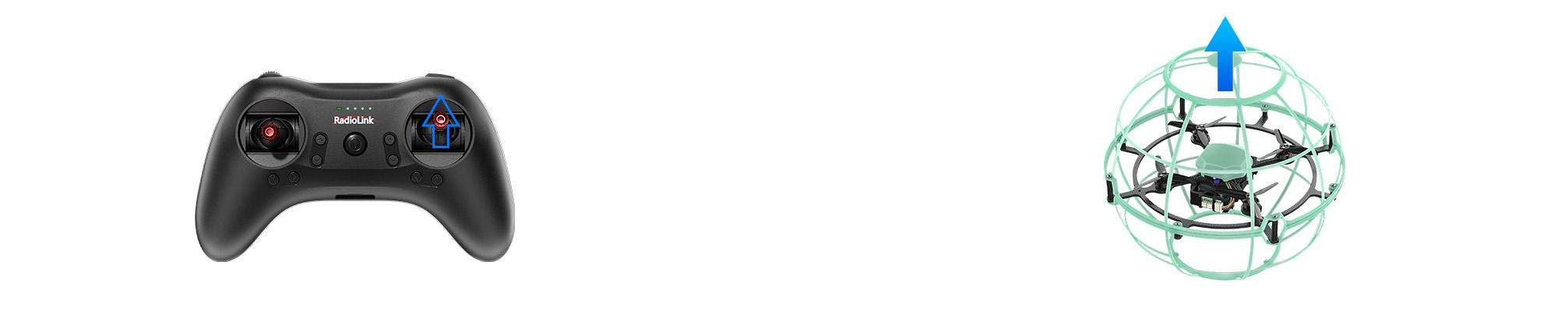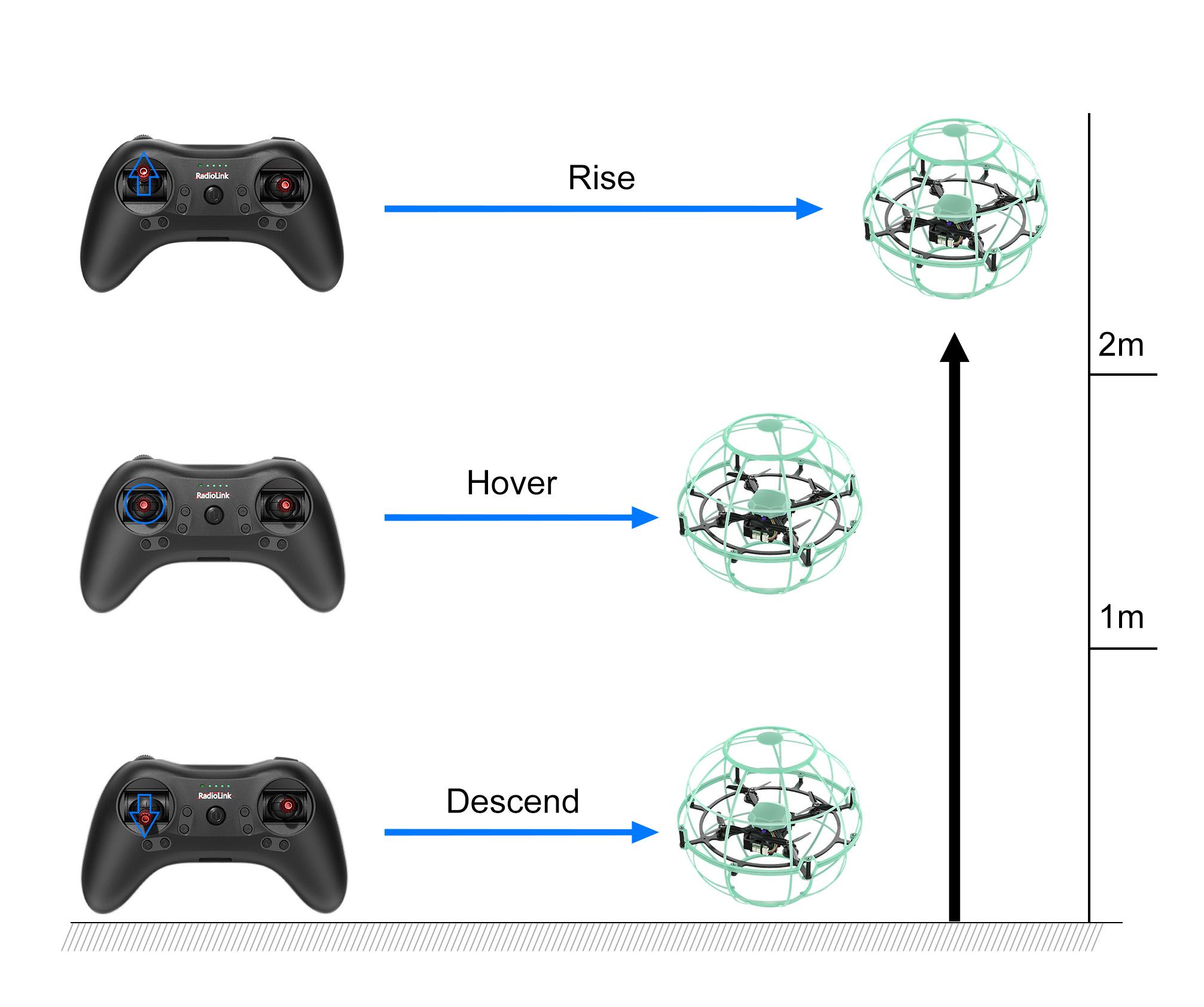 Altitude-hold and Stabilize Modes can be switched with one button. After the soccer drone is flipped, the CH8 roller switch can be used to trigger anti-turtle mode.