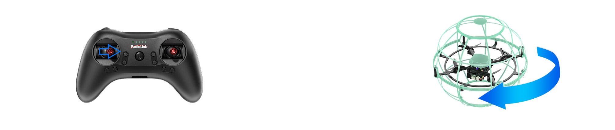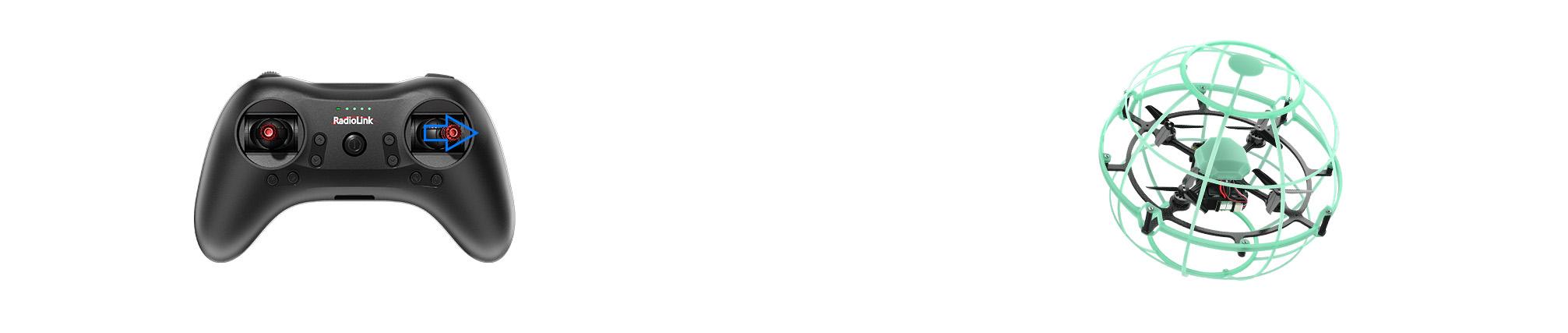 Toggle the roll stick (on the right) to the left and BDS200 will fly to the left side and toggle the roll stick to the right, then BDS200 will fly to the right side.