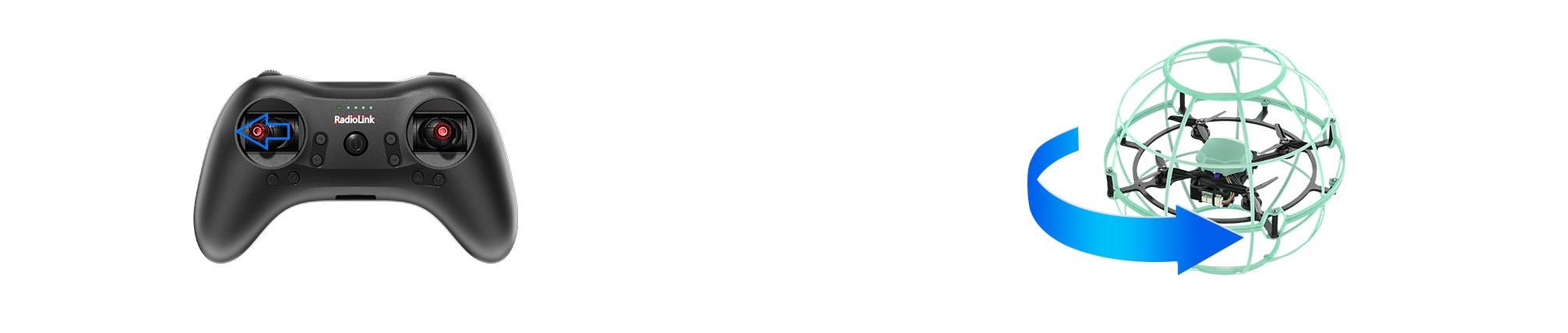 Toggle the yaw stick (on the left) to the left and BDS200 will turn anticlockwise and toggle the yaw stick to the right, then BDS200 turns clockwise.