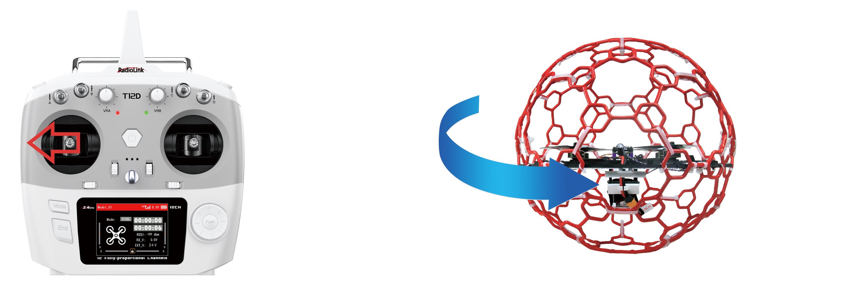 Toggle the yaw stick (on the left) to the left and LD-A40 will turn anticlockwise and toggle the yaw stick to the right, then LD-A40 turns clockwise.