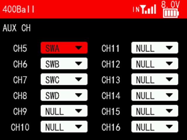 SWB: Push it up to turn off air mode. Push it down to turn on air mode. NULL in the middle. Corresponding to CH6 of the flight controller.