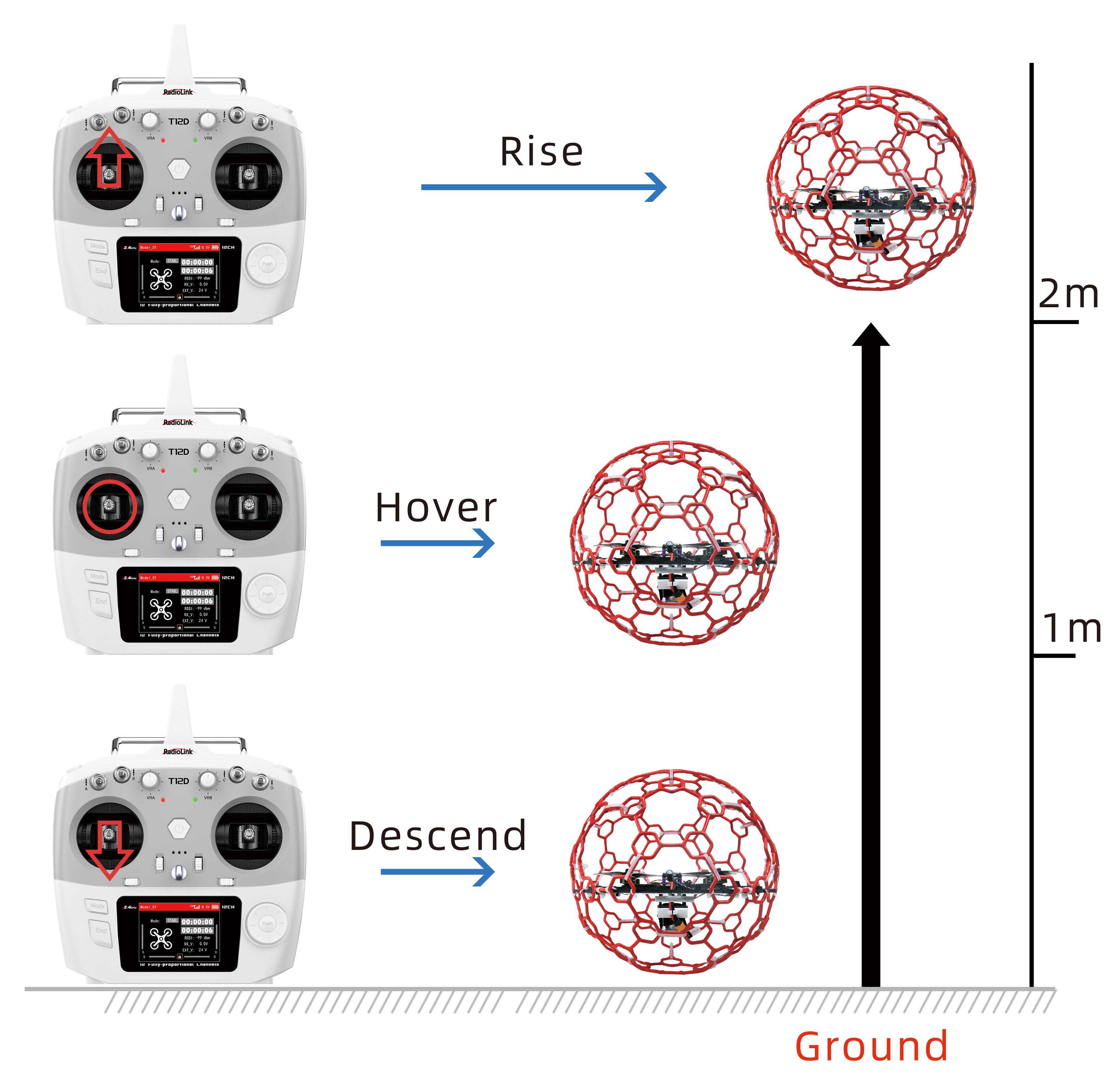 A. Throttle: Rise/ Descend/Hover(Note: Take T12D mode 2 as an example)