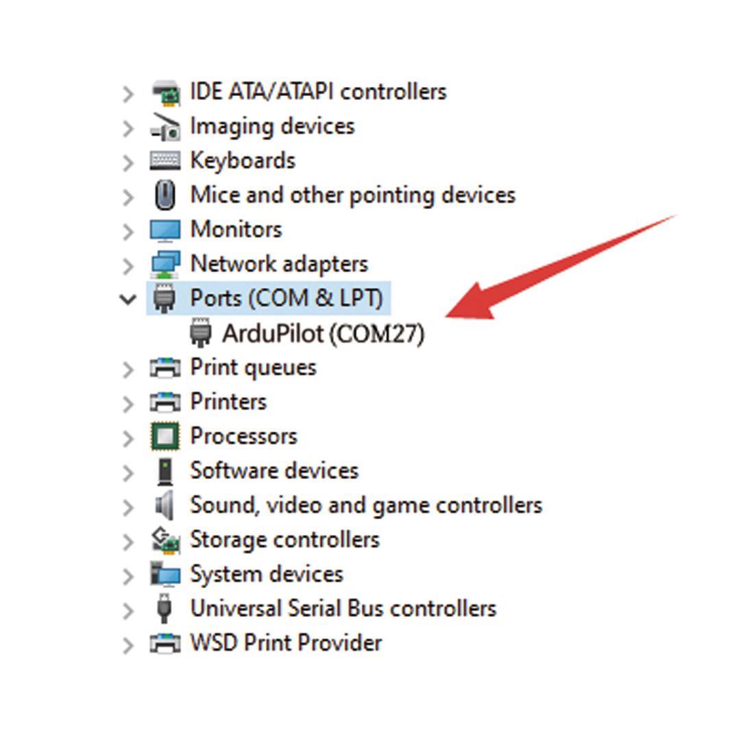 Note: Ports varies from different computers. Please select the correct port to connect. Connection may fail with several ports in use. Please remove the other connections, or enter Device Manager to view the port of the flight controller of LDZ-A40, just as below: