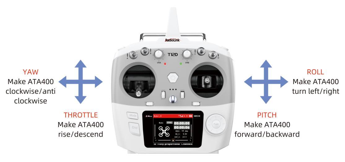 The two joysticks of T12D correspond to the four basic channels respectively.