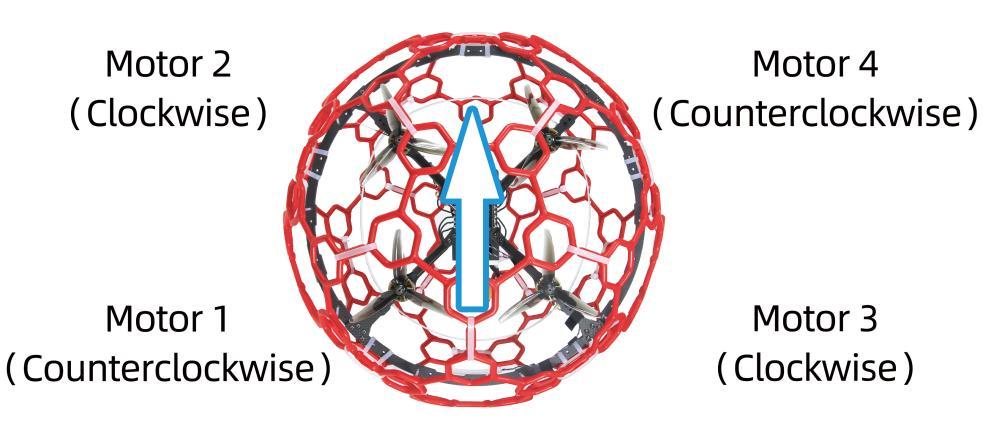 To make the drone fly, motors usually rotate clockwise (CW)/counterclockwise (CCW) with the propellers.It is very important to make sure about the rotation direction as below when installing motors. Otherwise, the drone would fail to take off.