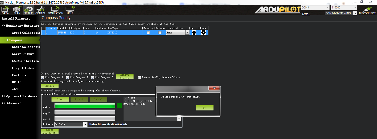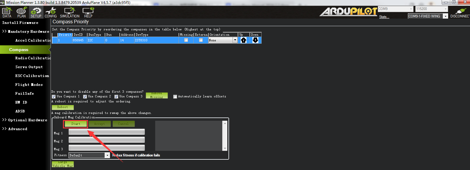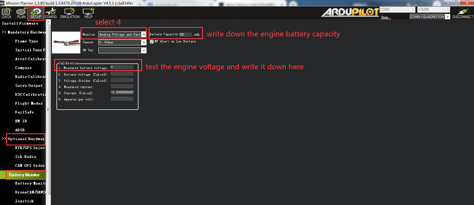 Connect flight controller to Mission Planner, and connect receiver to finish the calibration of transmitter, Accelerometer and compass.