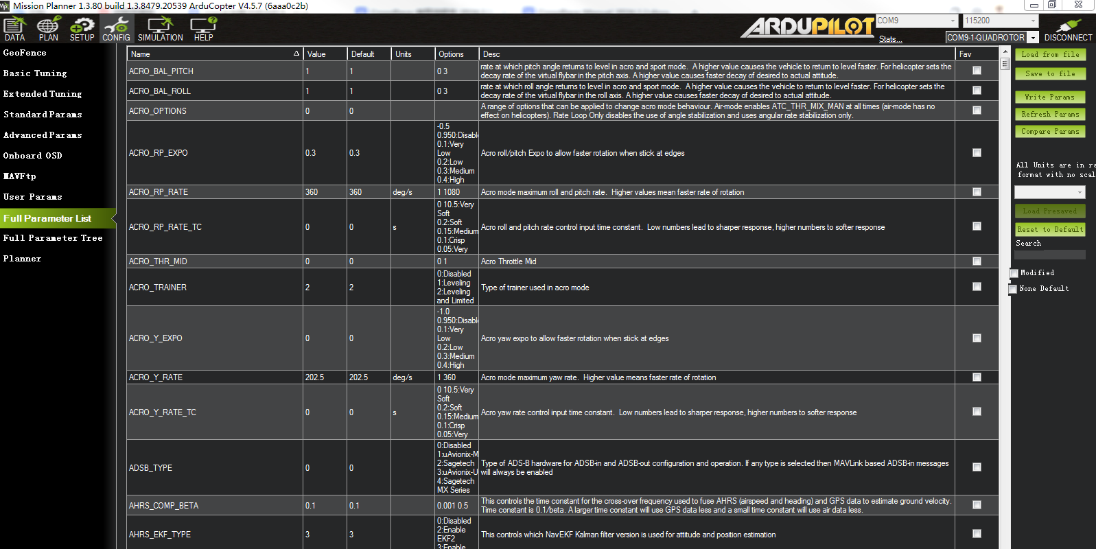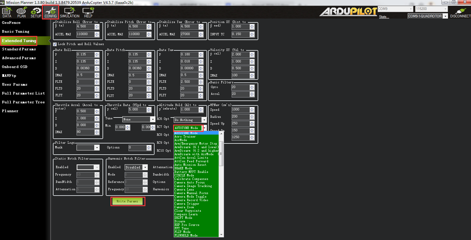 All settings of the flight controller can be set or adjusted. You can enter Full Parameter List to search the parameter you want to modify and then modify it. After the modification, please remember to click Write Params on the right.