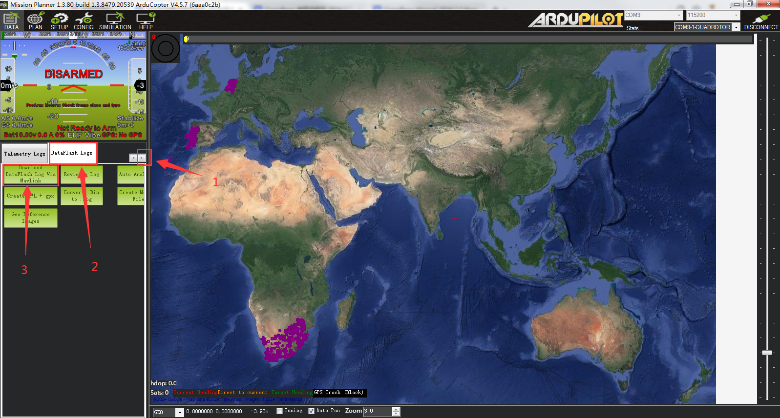 Connect the flight controller to Mission Planner. After the connection, perform the following operations to download the logs.