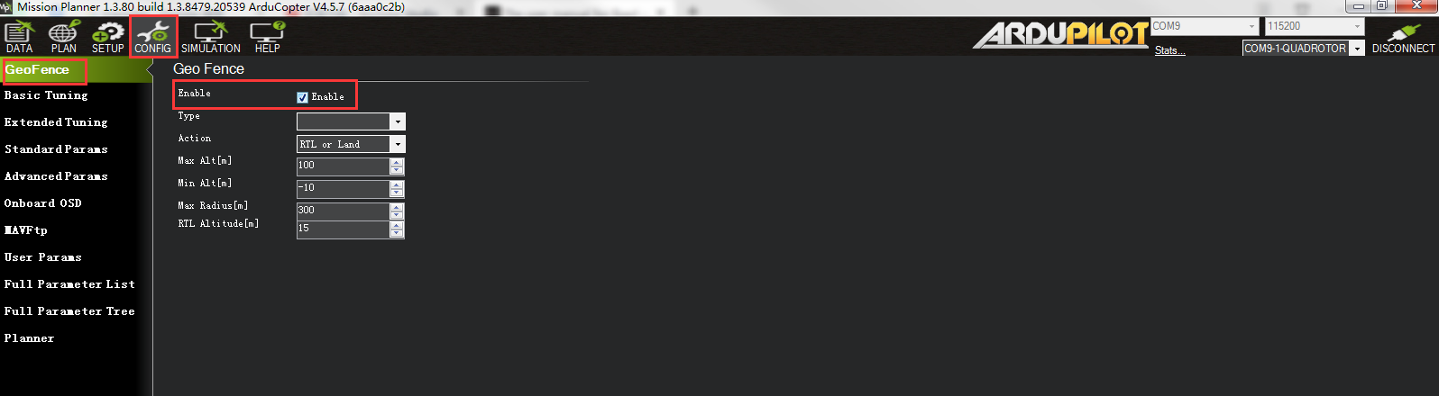FENCE_ALT_MIN (minimum altitude): Protection limit minimum flight altitude (-100-100m).
