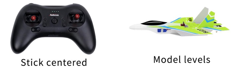 The model attitude (inclination angles) is controlled by joysticks. When the joystick is back to a central point, the aircraft will level. The max inclination angle is 70° for rolling while that for pitching is 45°.