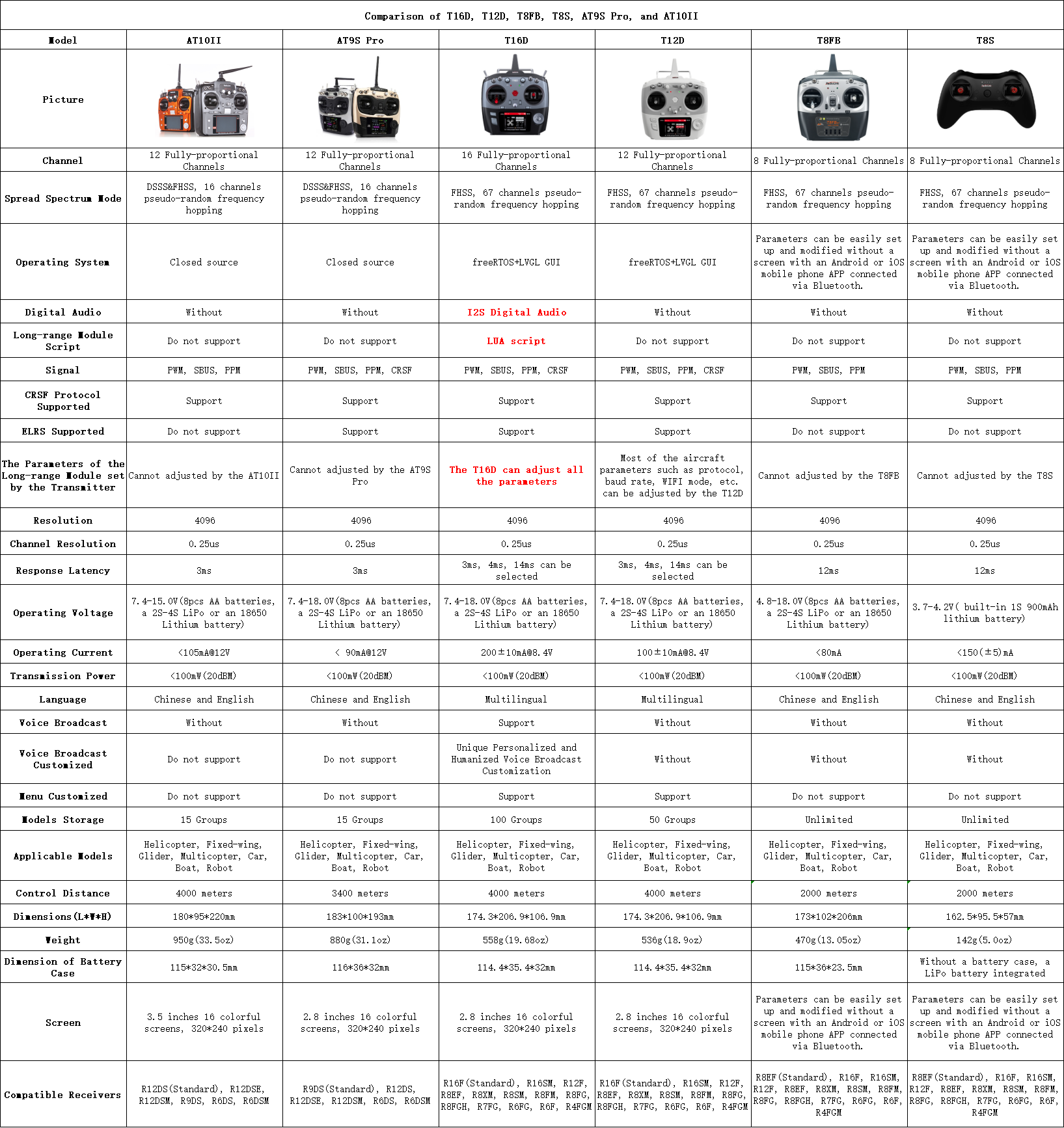 AT9S Pro is also compatible with R12DS, R12DSE, R12DSM, R6DSM, and R6DS receivers of RadioLink.