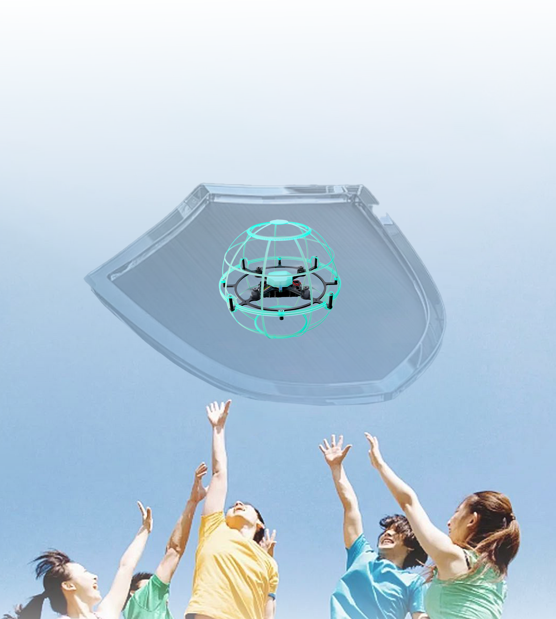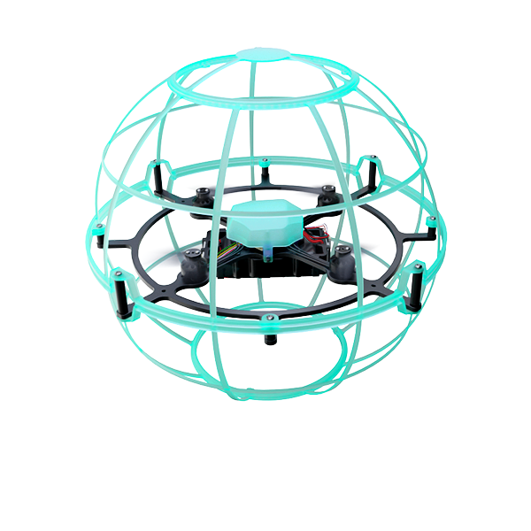 Different from the traditional racing drones' blade bare design, the soccer drone uses a high-toughness material frame, and 360 degrees full encircling protection, to avoid injury caused by accidentally touching the propellers in training and competition.