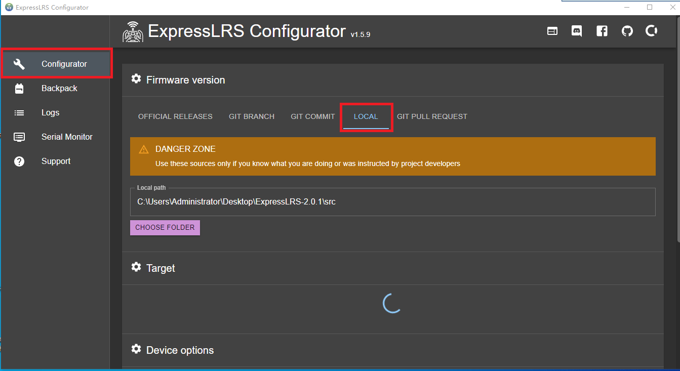 5.打开安装好的编译工具,选择Configurator,点击LOCAL,采用离线本地编译。