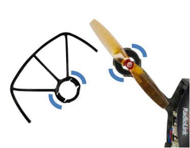 Find the two notches respectively on the motor guar dand propeller guard as image as below.