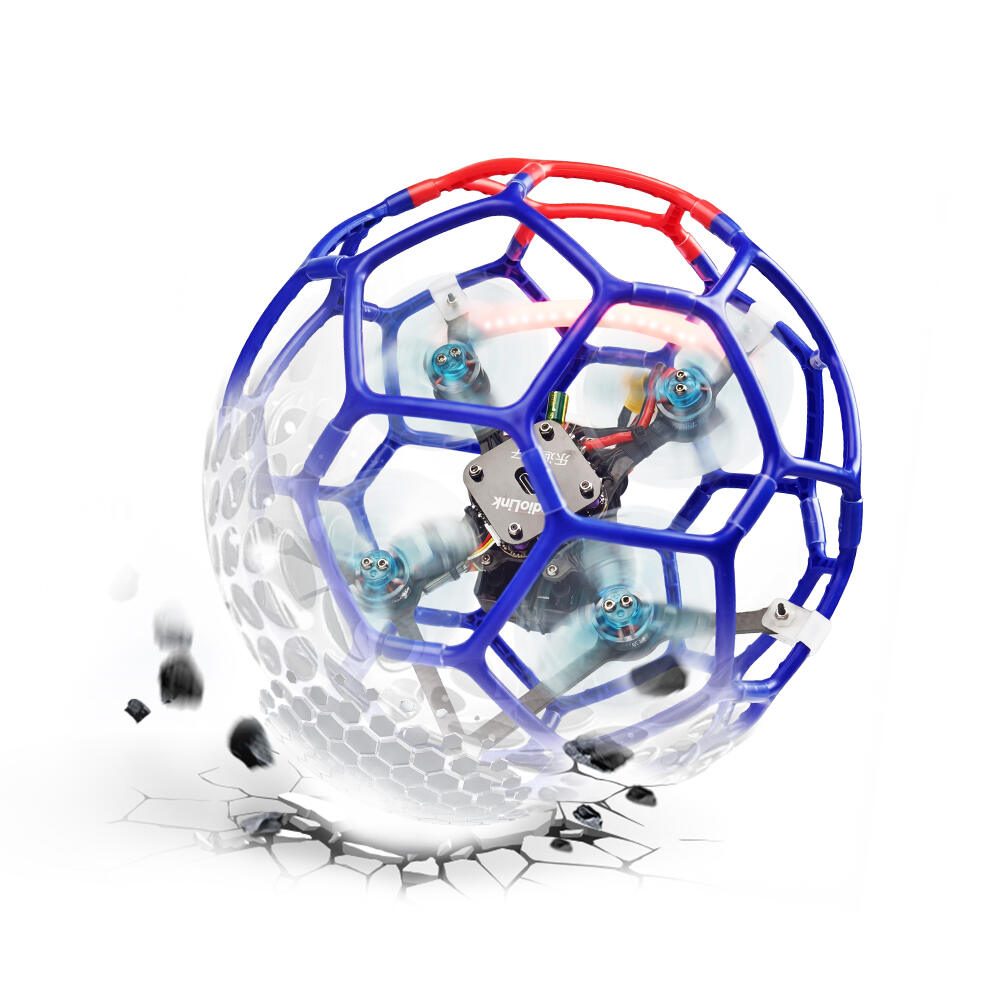 Unlike traditional racing drones with exposed propellers, the drone soccer aircraft features a fully enclosed protective frame made of high-toughness materials. The 360° shielding design eliminates propeller risks, ensuring zero injury during training and competition.