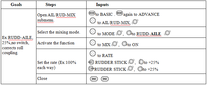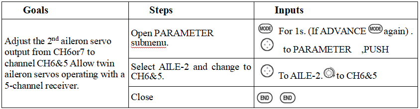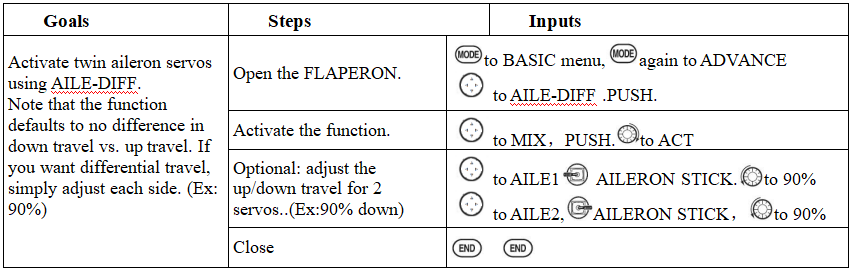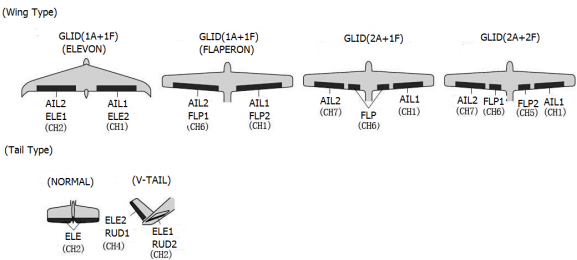 1 | Combined elev-2&aileron1 elev-1&aileron-2 | Combined flap-2 &aileron-1 | aileron-1 | Aileron-1 |